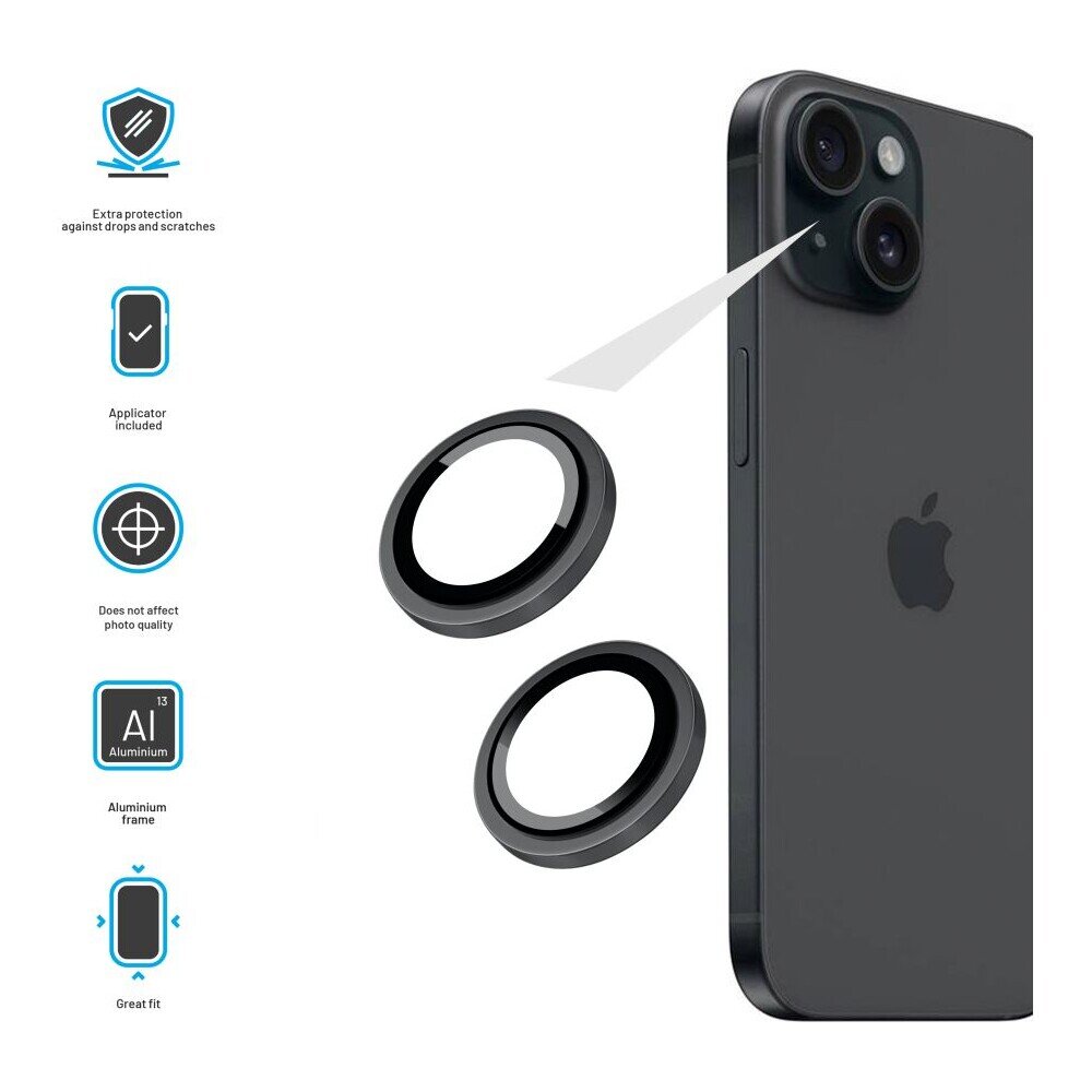 Ochranná skla čoček fotoaparátů FIXED Camera Glass pro Apple iPhone 16/16 Plus, černá