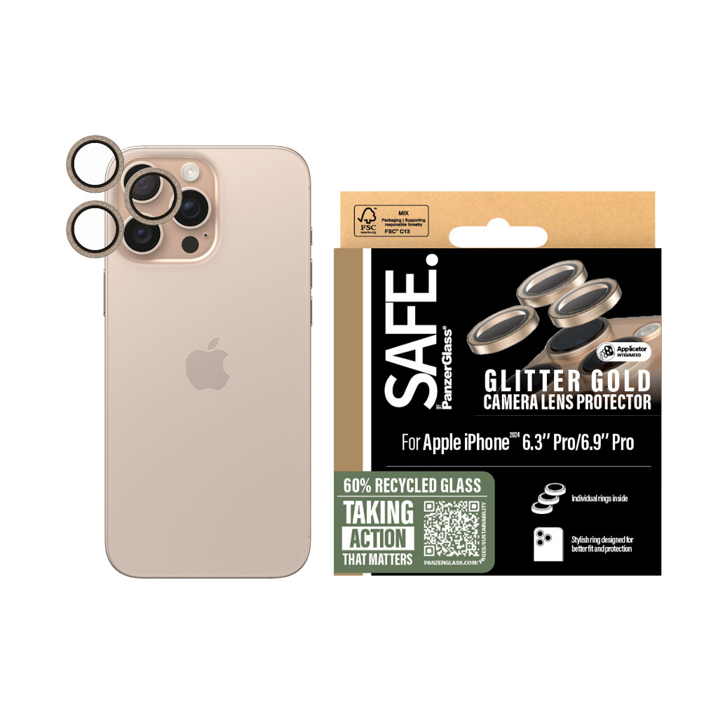 PanzerGlass® SAFE Camera Apple iPhone 16 Pro/15 Pro/16 Pro Max/15 Pro Max třpytivě zlaté HoOps™