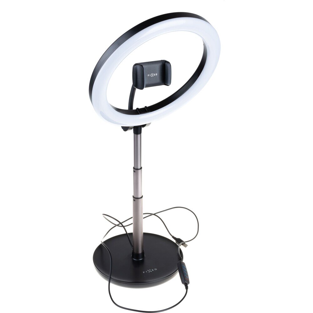 Stativ s kruhovým LED svítidlem a ovládáním na USB kabelu FIXED LEDRing Lite, černý