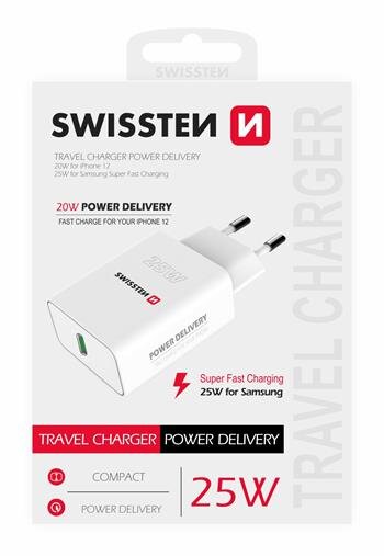 SWISSTEN SÍŤOVÝ ADAPTÉR PD 25W PRO IPHONE A SAMSUNG BÍLÝ