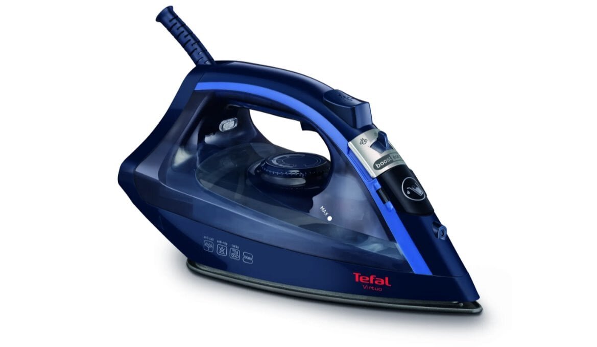 Napařovací žehlička Tefal FV1713E0 Virtuo přináší vynikající kombinaci skvělých vlastností a příznivé ceny. Žehlička dosahuje 25% úspory energie při zachování 100% účinnosti žehlení. O vzpurné záhyby se postará parní ráz 90 g/min a funkce kropení. K rychlému osvěžení prádla pověšenému na ramínku zase poslouží vertikální napařování.