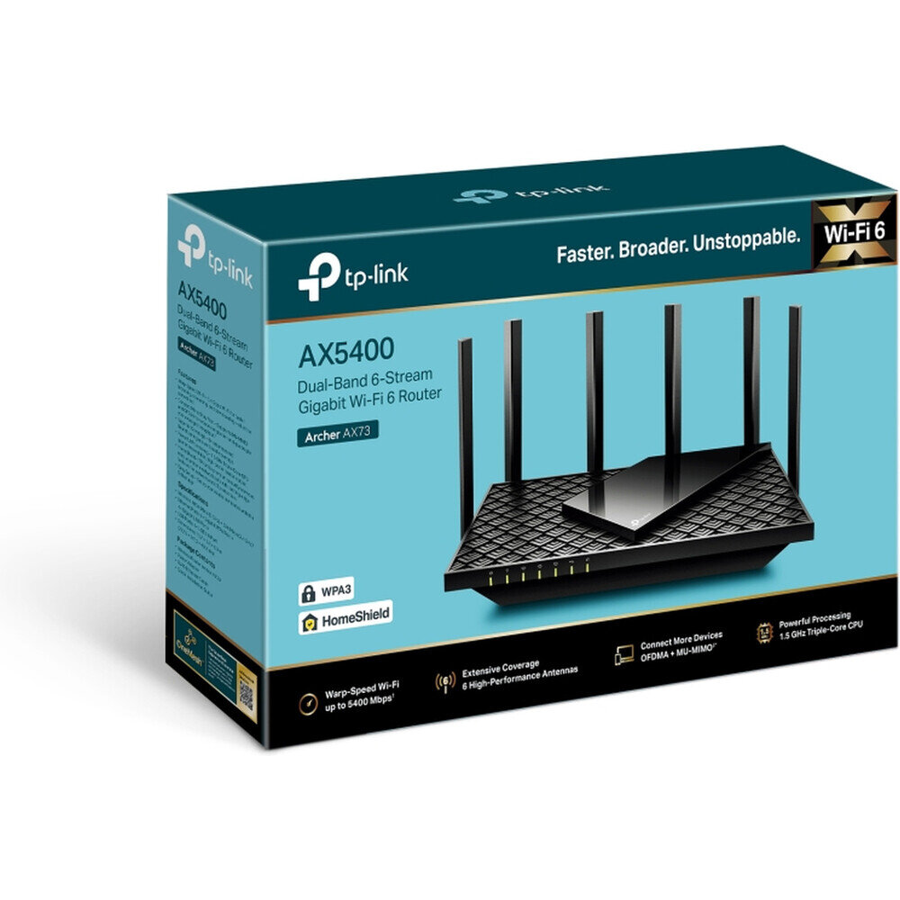 TP-Link Archer AX73, Wi-Fi 6 (802.11ax), Dvoupásmový (2,4 GHz / 5 GHz), Připojení na síť Ethernet, Černá, Přenosný router