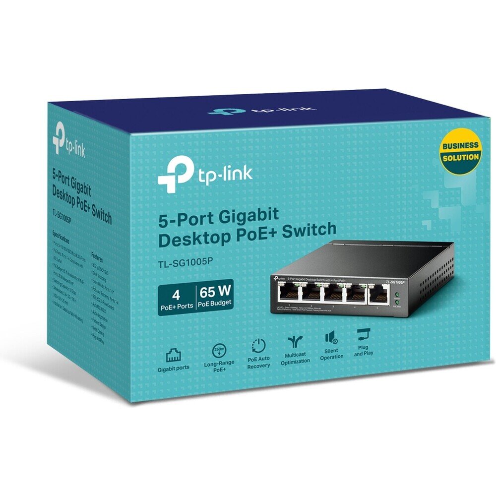 TL-SG1005P-PD 5portový gigabitový stolní PoE+ switch s 1 vstupním portem PoE++ a 4 výstupními porty PoE+