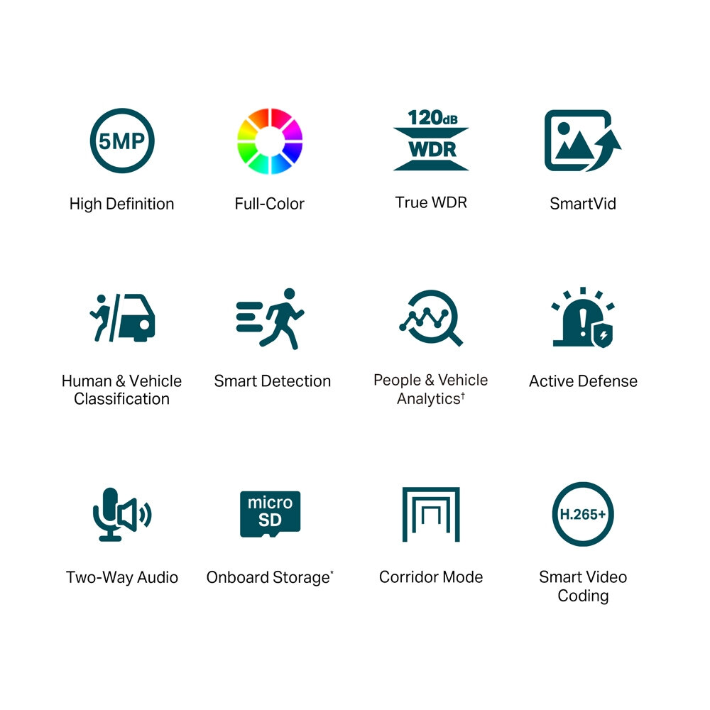 Sledujte 24 hodin denně čisté a barevné detaily, dokonce i za temných nocí. Barevná kamera VIGI poskytuje maximální rozlišení 5 Mpx a umožňuje barevné monitorování okolí díky objektivu s velkou světelností, senzoru s vysokou citlivostí a připevněným přídavným světlům.