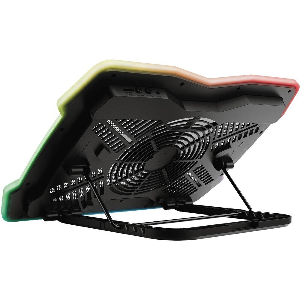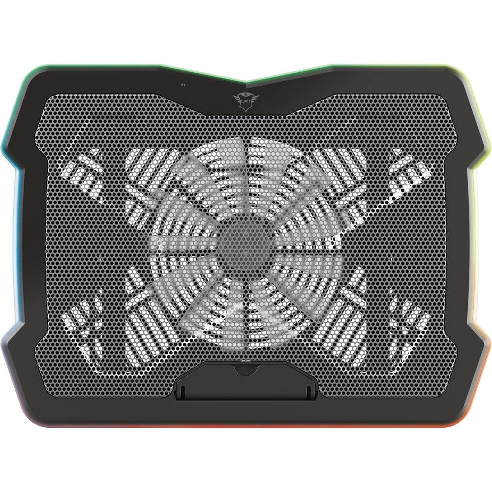 TRUST GXT 1126 Aura Multicolour-illuminated Laptop Cooling Stand. Vícebarevně osvětlený chladicí stojan, který udrží váš notebook v chladu i během těch nejnáročnějších her. Udržujte svůj notebook v chladu během horkých herních relací, zůstaňte v ergonomické poloze, abyste snížili zátěž na krk a záda. Doplňte svůj herní setup a zůstaňte v pohodě.