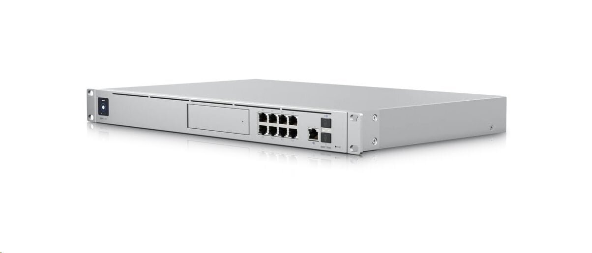 Integrated security gateway and UniFi Protect-ready NVR that supports compatible 3.5" HDDs