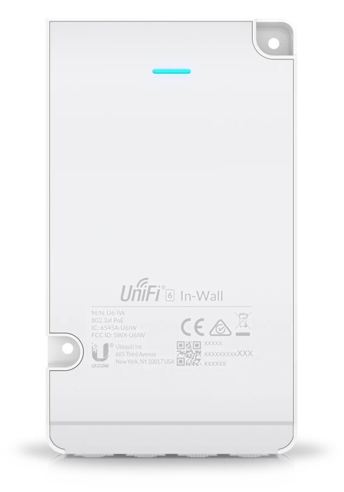 Nástěnná jednotka UniFi 6 In-Wall (U6-IW) je Wi-Fi AP s podporou frekvenčních pásem 2,4 GHz a 5 GHz a přenosovou rychlostí (agregovaná propustnost) 5,3 Gbps. Výhodou jsou malé rozměry, je tak ideální pro firemní nebo domácí použití.