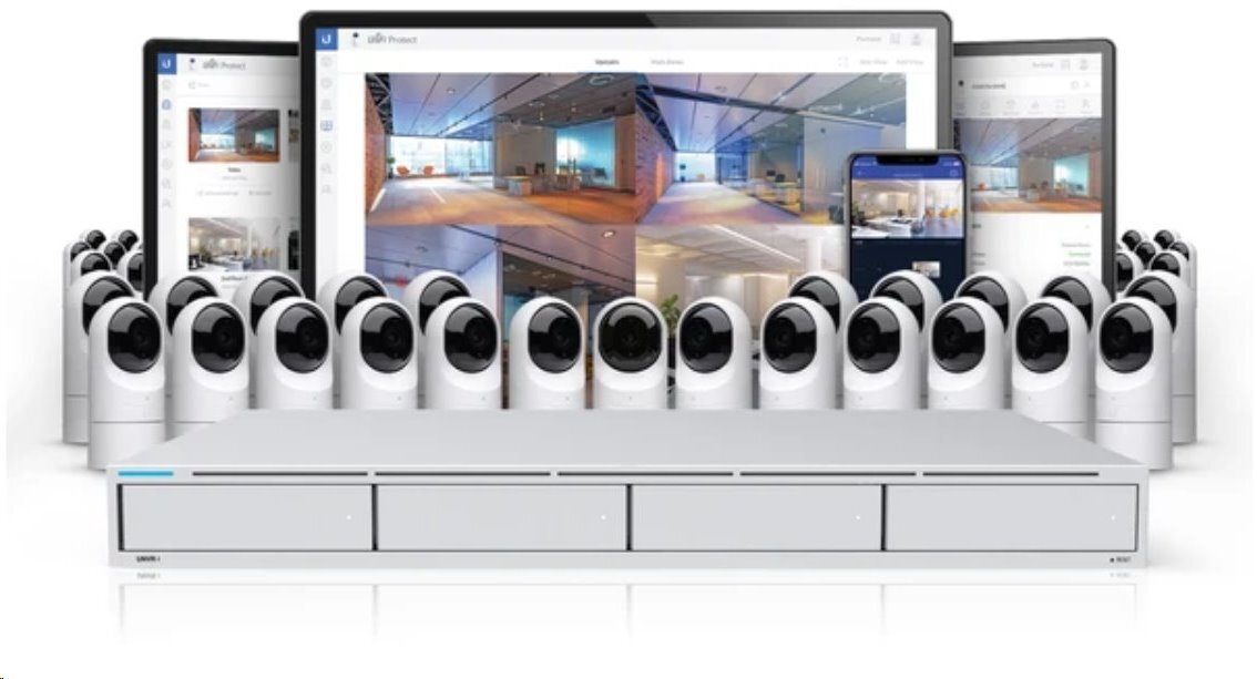 UniFi NVR je enterprise zařízení, na kterém je předinstalovaný software UniFi Protect a je vybaveno 4 šachtami, do kterých lze umístit jak 2,5'' tak 3,5" disky. Disky jsou přístupné z předního panelu, takže jejich montáž a výměna jsou opravdu jednoduché úkony.