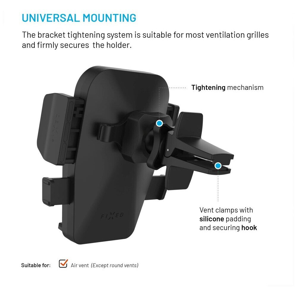 Univerzální držák do auta FIXED Iconiq Vent s úchytem na ventilační mřížku, černý
