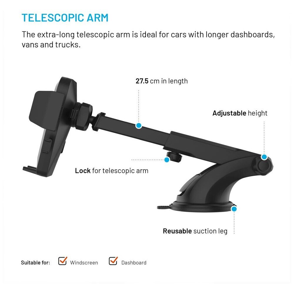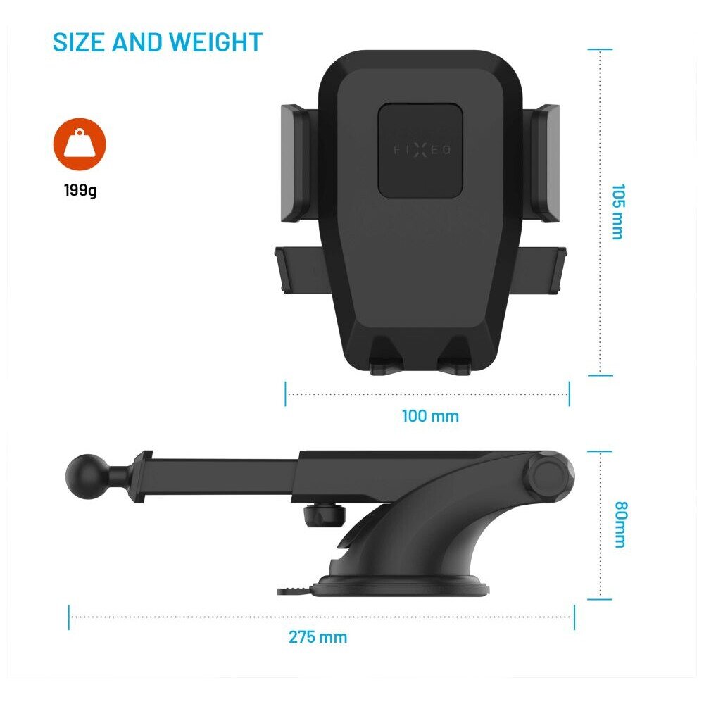 Univerzální držák do auta FIXED Iconiq XXL s dlouhou přísavkou na sklo nebo na palubní desku, černý