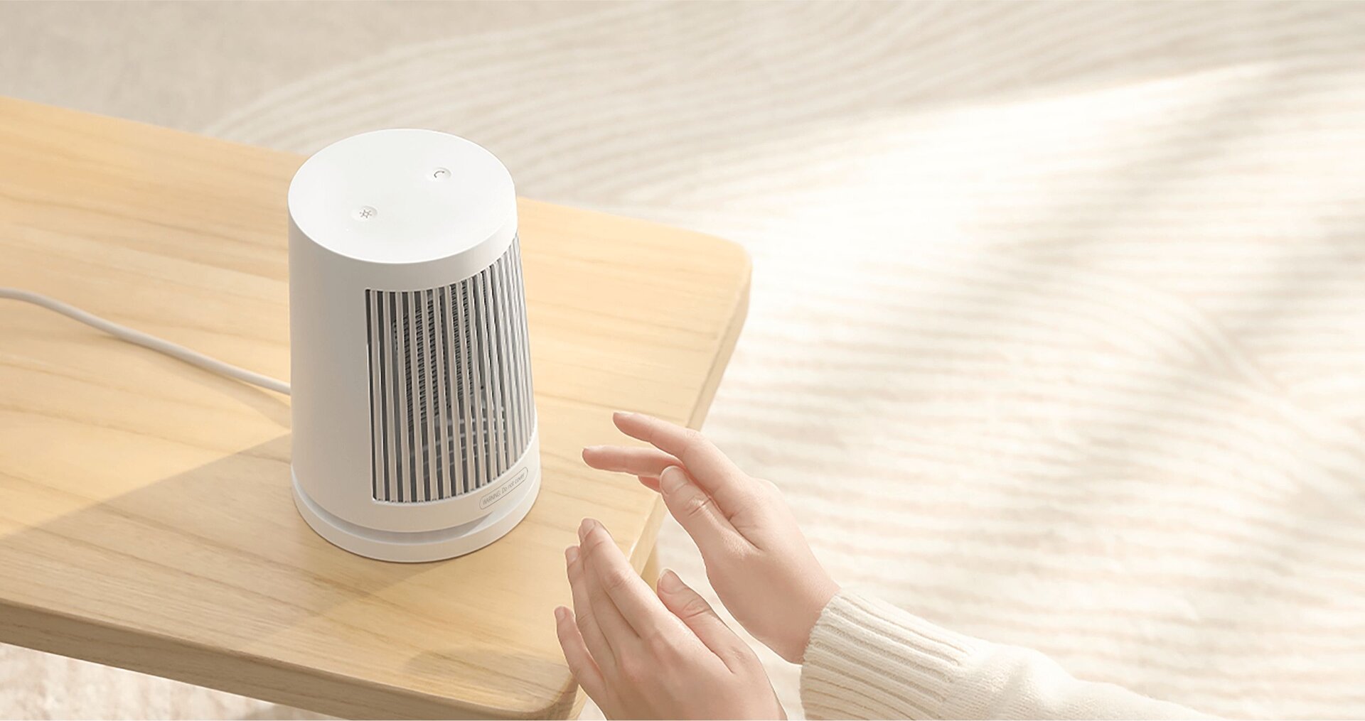 Stolní ohřívač Xiaomi Desktop Heater v kompaktním designu a s 45° oscilačním prouděním vzduchu. Automatické vypnutí při naklonění, dvojitá tepelná ochrana, materiály zpomalující hoření.