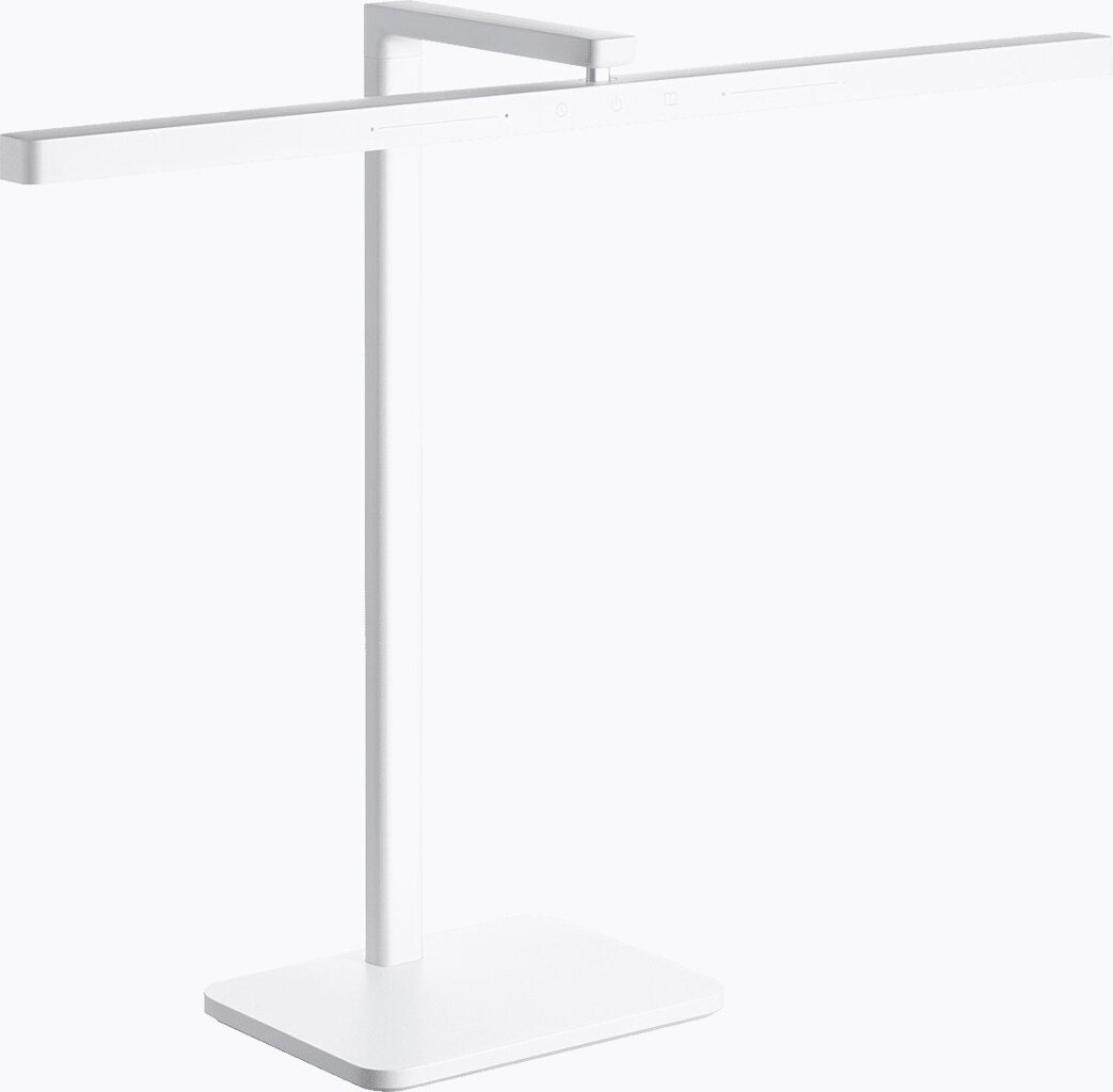 LED stolní lampa Xiaomi Mi LED Desk Lamp 2 v bílé barvě. 60cm horizontálně zavěšená hlava lampy, bez blikání, blokování modrého světla RG0, vysoký index podání barev, 112 LED diod, intuitivní dotykové ovládání, nastavení dopředu + dozadu v rozsahu 25 stupňů.