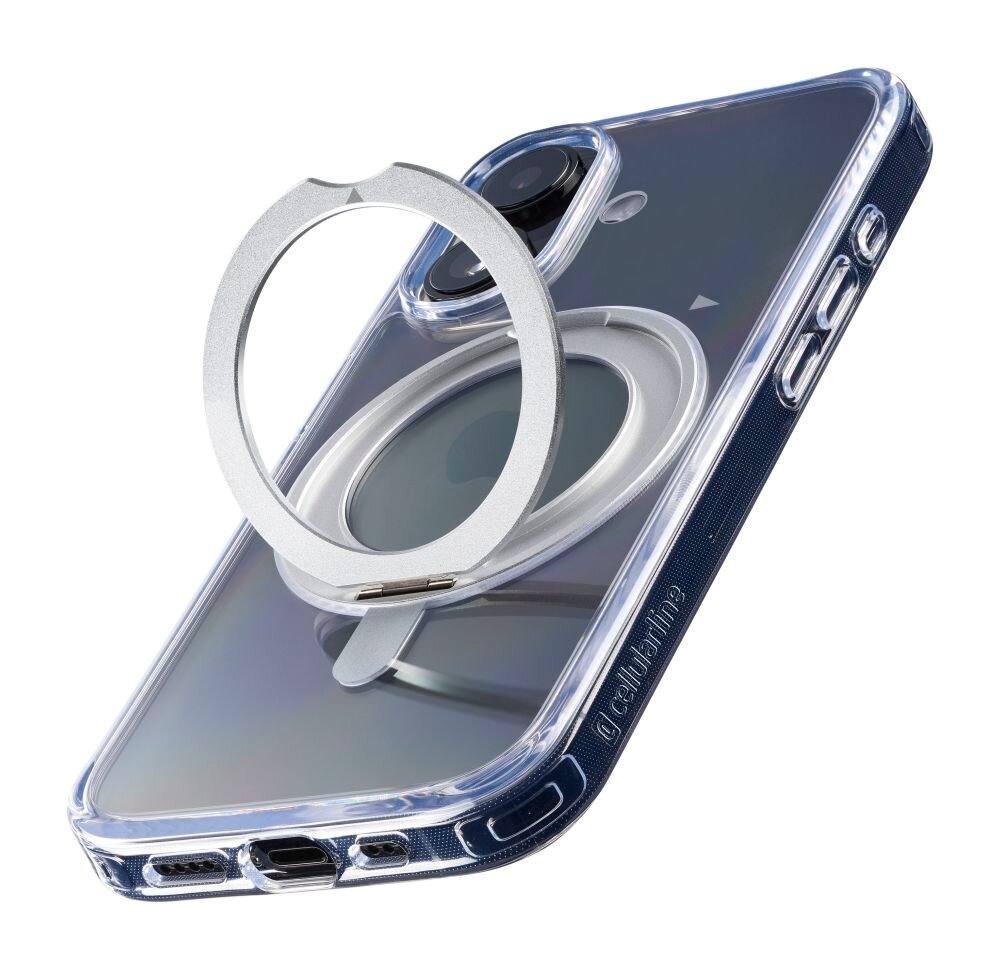 Zadní čirý kryt Cellularline Spin Mag se skládacím stojánkem a podporou MagSafe pro Apple iPhone 16