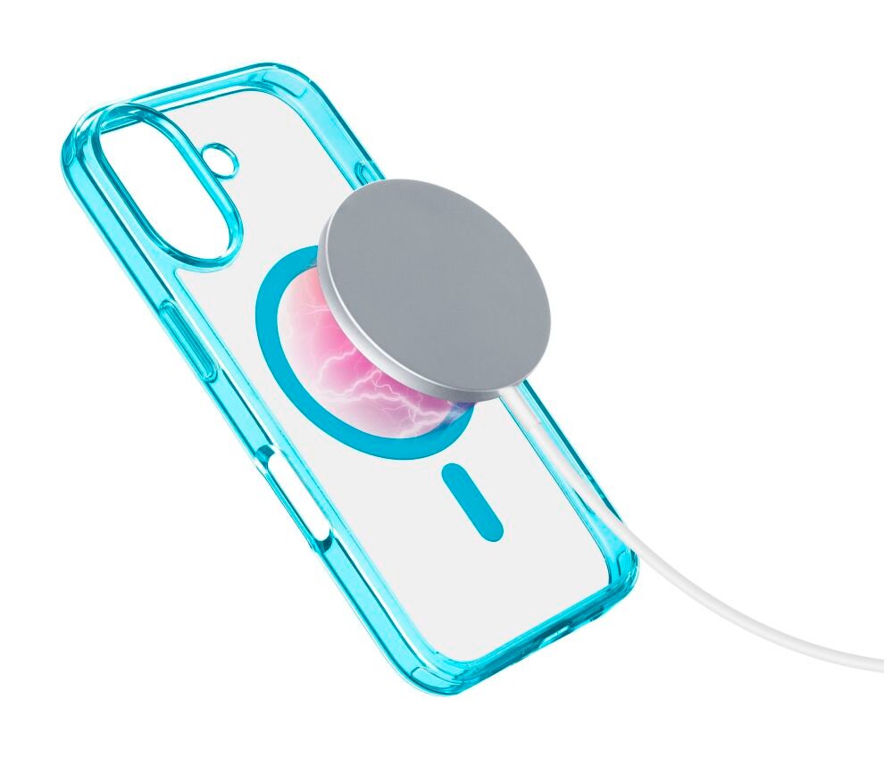 Zadní kryt Cellularline Iconic Mag s podporou Magsafe pro Apple iPhone 16, čirý / světle modrý