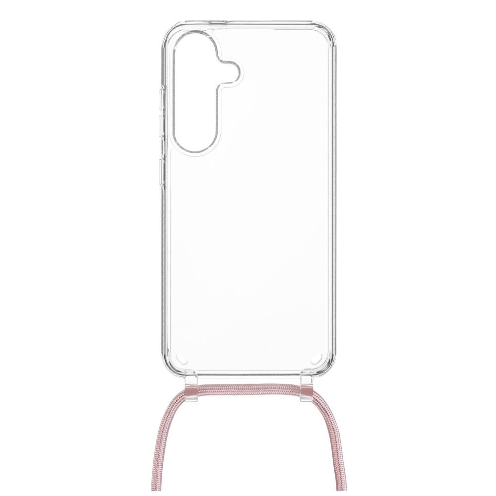 Zadní kryt FIXED Pure Neck s růžovou šňůrkou na krk pro Samsung Galaxy S25